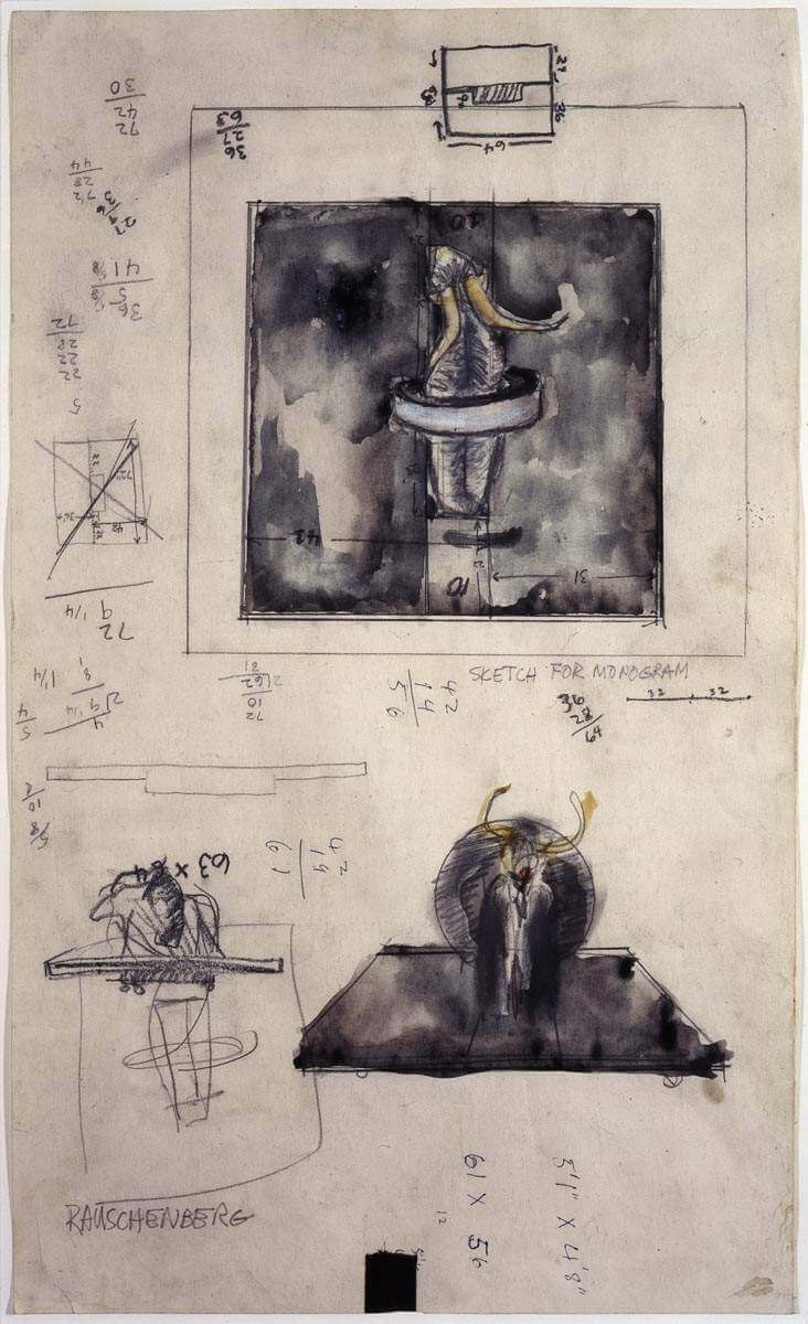 Robert Rauschenberg Sketch for Monogram 1959 Watercolor and graphite on paper 19 1/8 x 11 3/8 in. (48.6 x 28.9 cm) Robert Rauschenberg Foundation RRF 59.D005
