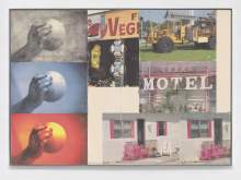 Using the same transfer process that Rauschenberg employed since 1992, the Scenarios were made by transferring digital color images—made on an inkjet printer—onto two polylaminate panels. Imagery is often arranged in a gridlike format with less overlap than in preceding works resulting in swathes of negative space. As Rauschenberg’s right hand was partially paralyzed at the time, studio assistants took photographs, which Rauschenberg then selected and placed on the picture surface. He instructed his assistants to transfer the images in a straightforward, uninflected manner.