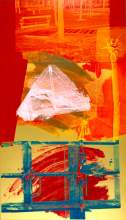 Urban Bourbon is a series of paintings comprised of silkscreened images drawn from Rauschenberg’s own photographs, expressionistic brushstrokes, and often poured or flung paint, in vivid acrylic colors, on enameled, mirrored, and anodized aluminum.