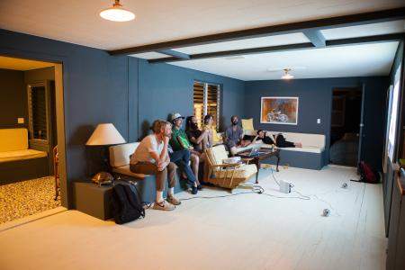 Today, the converted garage studio space still houses a lithography press and etching press that the artists in residence use for printmaking work, and the rest of the house serves as a residence.